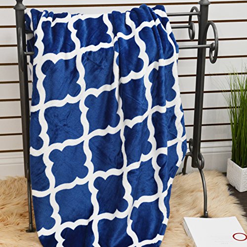 Luxury Printed Flannel Blanket/Throw 50" X 60inch Ultra Plush Beautiful Design, Dark Blue