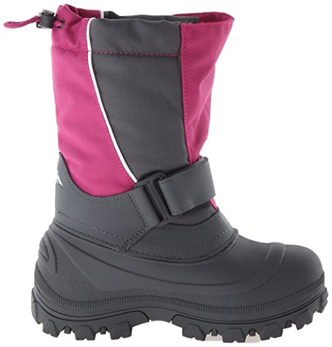 Mid-calf winter boot with water-resistant upper featuring hook-and-loop ankle strap and bungee cord at topline
