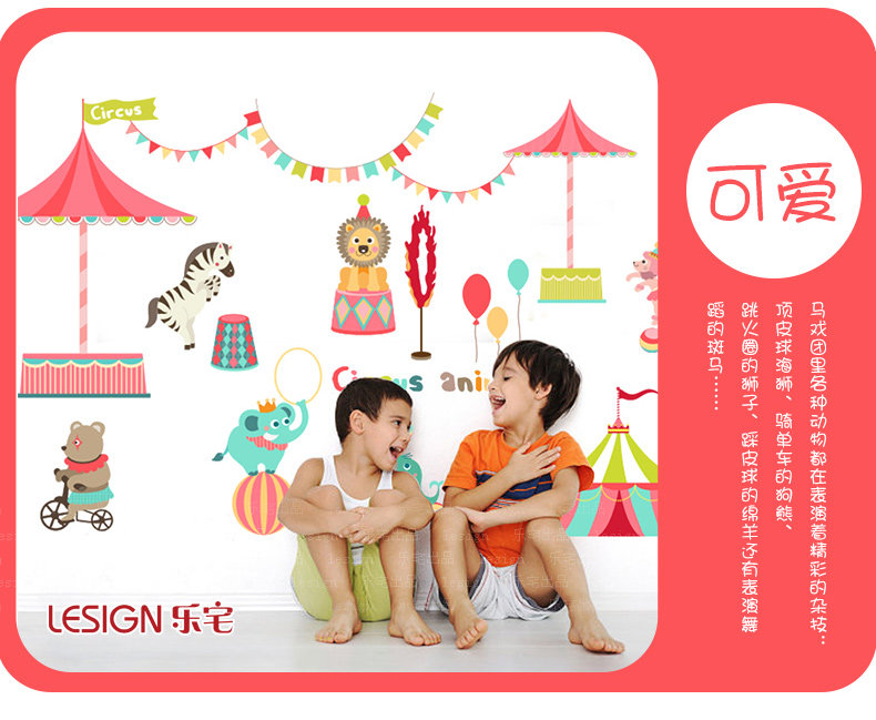 卡通儿童房宝宝卧室自粘壁纸墙贴画可爱幼儿园教室装饰动物墙贴纸