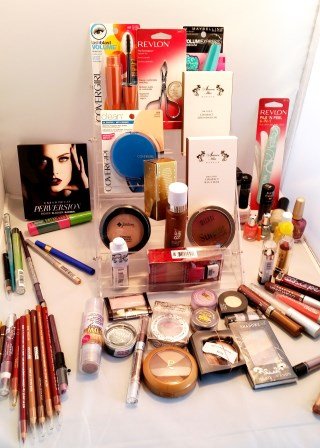 -. Feature : VT Country Shop Carefully Packages all 60 PC. Set CoverGirl, Maybelline, Amore Mio 24k Gold and more / Mascara, Shimmering Eye Shadows, Lipsticks, Lip Gloss, Bronzers, Foundation, Nail Set, / CoverGirl, Maybelline, Amore Mio 24k Gold Makeup, Milani, Jordana, / Maybelline Wisper, CoverGirl Lashblast Fusion Black Mascara, / Amore Mio 24k Gold Blush & Foundation Compact, Shimmering Eye Shados, Lip Balm