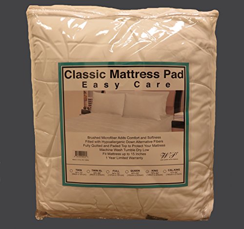 -. Brand : WP -. Feature : Dust Mite / Pressure Relief / Machine Washable / Allergy Relief / Deep Pocket -. Label : West Pacific Home Fashions -. Manufacturer : West Pacific Home Fashions -. ProductGroup : Home -. ProductTypeName : HOME_BED_AND_BATH -. Publisher : West Pacific Home Fashions -. Studio : West Pacific Home Fashions -. Title : Fit 13"-15" Deep Hypoallergenic Microfiber Quilted Mattress Cover Pad