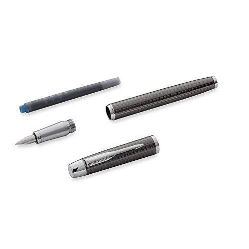 -. Binding : Kitchen -. Brand : Parker -. Color : Gun Metal -. Feature : A resolutely contemporary statement in all-metal design, The IM's tapered shape combines comfort, simplicity and accessibility. / Choose from a wide range of high-quality finishes to match any mood. / Stainless steel nib provides superior resistance and durability, and is designed to provide optimal writing angle for right- or left-handed writers. / Gunmetal grey enhanced with a tactile and visual chiselled crosshatch pattern. -. Label : Sanford -. Manufacturer : Sanford -. MPN : S0908680 -. PackageQuantity : 1 -. PartNumber : S0908680 -. ProductGroup : Home -. ProductTypeName : HOME -. Publisher : Sanford -. Studio : Sanford -. Title : Parker IM Premium Fountain Pen, Medium Point, Chiseled Gun Metal (S0908680)