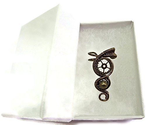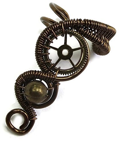 -. Title : Pair of Bronze and Swarovski Crystal Small Woven-Wire Steampunk Ear Cuffs with Chains