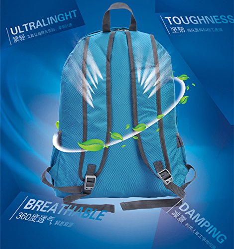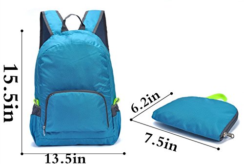 -. Feature : FOLDABLE EASY CARRYING, Fold into zippered pouch and put in handbag, lage etc. for saving space and avoid overweight charge. Easily unfold from pouch to backpack. / THE BACKPACK is made from highly rip and water resistant nylon fabric, provide strengthen and long-lasting performance with minimal weight. / CAPACITY - 30L storage space, keep things organized. / COMFORTABLE: Comfortable Wide Breathable Mesh Shoulder Straps, plentiful sponge padding inside help to relieve the stress from your shoulder. Easy to Adjust the length and lock firmly. / THE BEST foldable camping outdoor travel bag