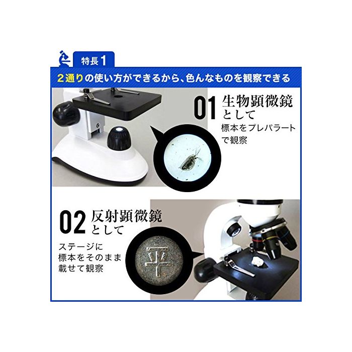 원본상품명: 【特別版:微鏡察ガイド付】微鏡セット 40-800倍 2Way (生物微鏡と反射微鏡) マイクロスコプ 子供 小生 中生 高校生の習用 クリスマス 誕生日プレゼント 進祝い 入