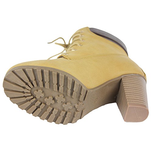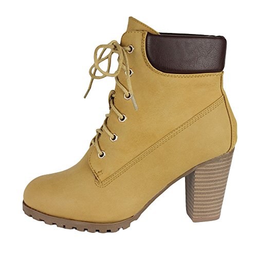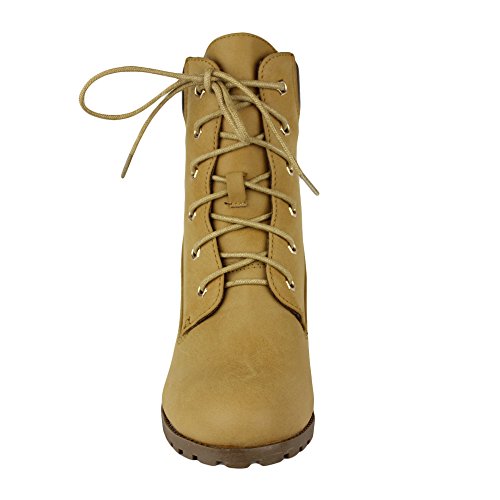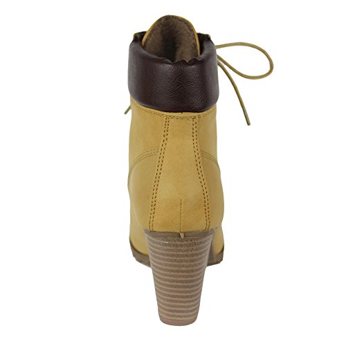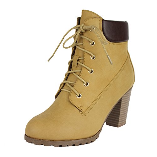 Womens Rugged Lace Up Stacked High Heel Ankle Boots
