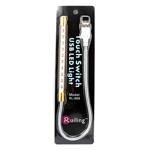 RuiLing 10 LED Bright Flexible USB Light With On / Off Touch Switch - Best for Reading, Working, Studying & Camping or More No Batteries Needed - PC & Mac Compatible - Golden B01CMF61WG