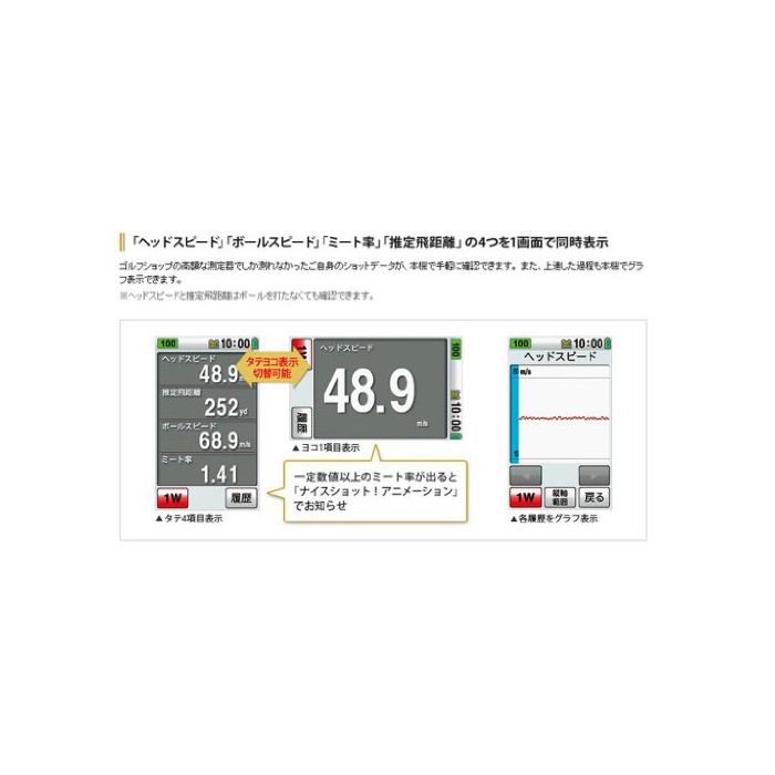 헤드 스피드 표시 범위:15.0m/s~99.9m/s