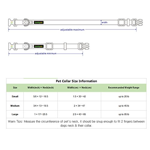 Studio : Lovinpet Publisher : Lovinpet Binding : Misc. Product Description Why choose our nylon pet collar? Featuring an adjustable buckle, it's quite easy to use. Not to mention, the dog-friendly print is absolutely adorable. Made out of neoprene, the collar is also soft but strong. The colors of the adjustable collar are also fun bright. The padded dog collar even makes a great doggy gift! Adjustable Pet Collar Sizing: Small Pet Collar = 5/8 x 12-16.5 inch Medium Pet Collar =3/4 x 13-18.5 inch Large Pet Collar = 1 x 17-25.5 inch Features: *Extra Durable Neoprene Material *Available in Small, Medium Large *Colors: Green/Rose Red/White/Yellow/Blue/Red Package Includes 1 LovinPet dog collar (S, M or L) Note This collar is a single product. However, it comes with matching leash/harness/safety seat belt to complete the look. Leash and harness sold separately. 0