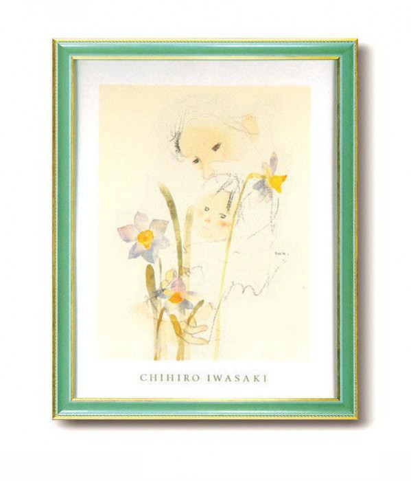 淡い色使いで優しく描き上げた、ちひろの温かい雰囲気とかわいらしい絵を大きなポスター額にしました。