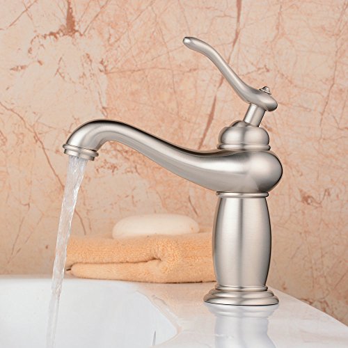 Hiendure 7.87" Single Handle Bathroom Sink Faucet Lavatory Faucet Basin Vanity Sink Faucet Contemporary One Hole Deck Mount, Brushed Nickel