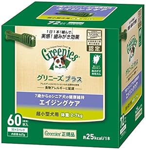 「グリーニーズ プラス エイジングケア」は、シニア犬の関節の健康維持に配慮して、グルコサミン・コンドロイチンを含有。