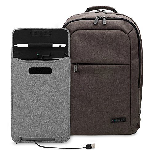-. Binding : Personal Computers -. Brand : CaseCrown -. Color : Brown -. Feature : 15 inch Campus Backpack & iPad Pro 9.7 Power Sleeve combo / Backpack: Dedicated padded laptop compartment (compatible up to 15 inch laptops) / Power Sleeve: Includes an interior Apple Pencil holder (Apple Pencil not included) / Power Sleeve: Convenient accessibility to charge device within the sleeve (MFI-certified angled lightning cable included) / Carry your iPad Pro 9.7 in the sleeve & slip it inside the backpack for extra protection -. Label : CaseCrown -. Manufacturer : CaseCrown -. ProductGroup : PC Accessory -. ProductTypeName : CARRYING_CASE_OR_BAG -. Publisher : CaseCrown -. Studio : CaseCrown -. Title : 15 inch CaseCrown Campus Backpack (Brown) & iPad Pro 9.7 Power Sleeve (Charcoal Gray) Combo w/ Apple Pencil Holder & MFI-certified angled lightning cable for charging