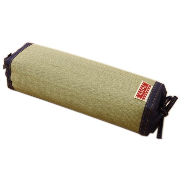 | ヘリ部分に国産のデニム生地を使用した「い草枕」です。国産のしなやかない草を使用していますので、柔らかくすべすべとした肌触りです。い草には抗菌・防臭効果のある青森ヒバ加工を施しています。中材には通気性の良いポリエチレンパイプを使用しており、通気性がよく熱がこもりにくいのが特徴です。 |