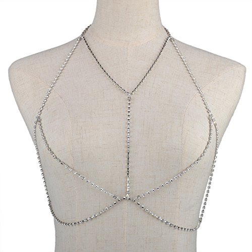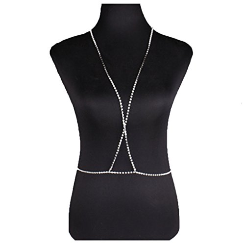 Zealmer Crystal Rhinestone Women Harness Body Jewelry Bikini Bra Crossover Belly Waist Chain Si...