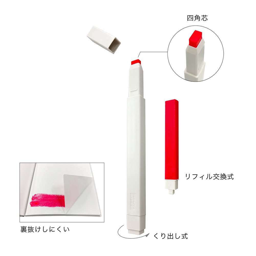 By adopting a color material which is difficult to get through the paper, a rectangular core which is easy to paint small places, and an economical refill formula, it is finished as a graphic marker that is affordable and easy to handle as a drawing material and as a line marker