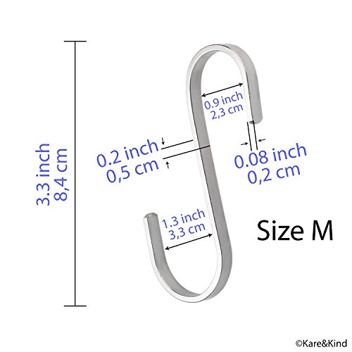 The durable flat S-shaped hanging hooks are made from heavy duty solid 304 stainless steel and will last a lifetime.