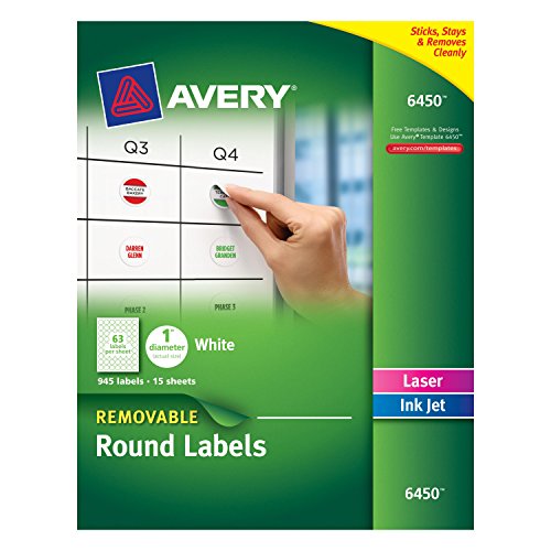 Avery Removable Round Labels, 1-Inch Diameter, White, Pack of 945 (6450)
