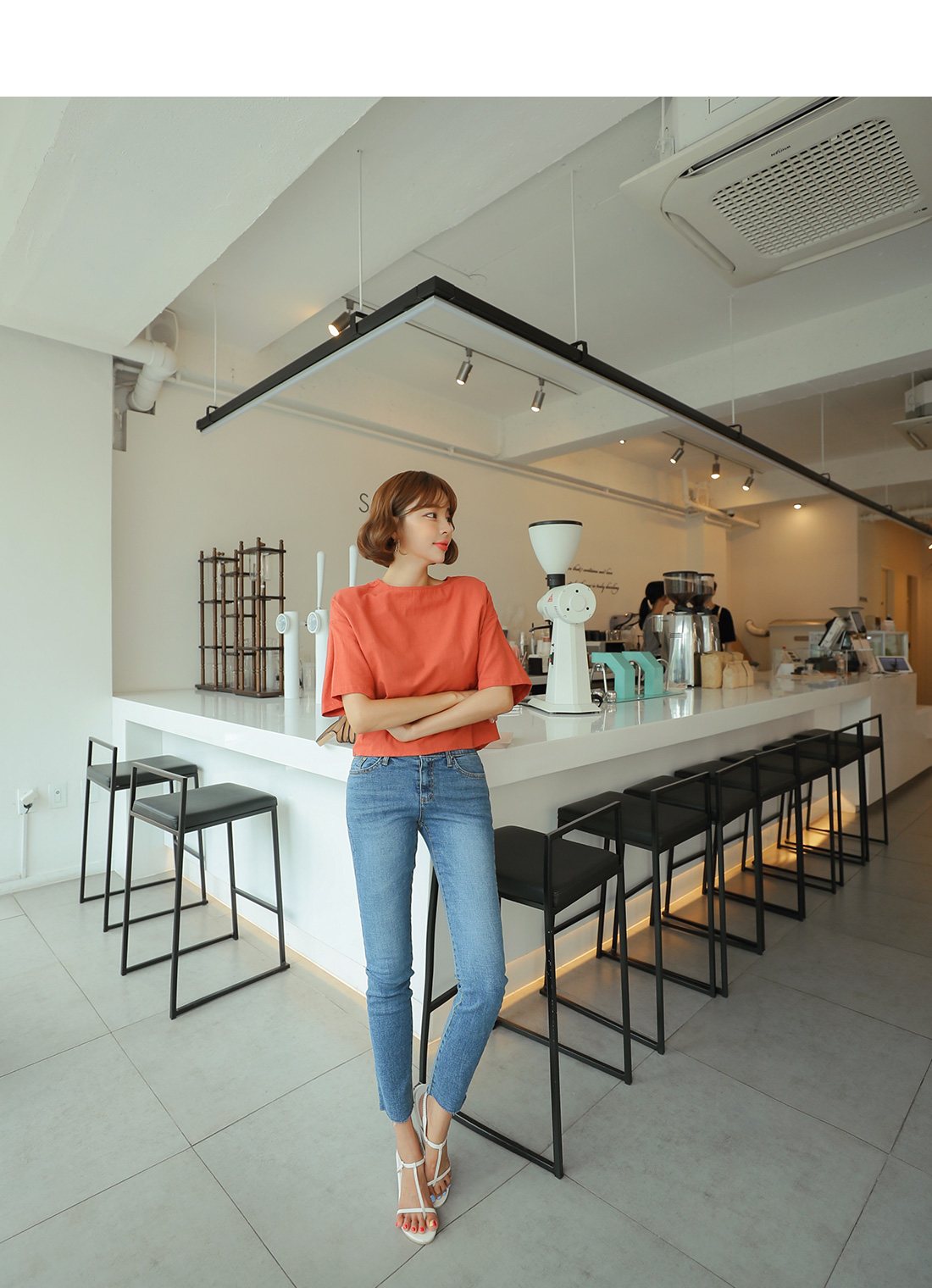 드롭된 숄더라인으로 은근- 여리여리한 분위기도 가져갈 수 있구요.
