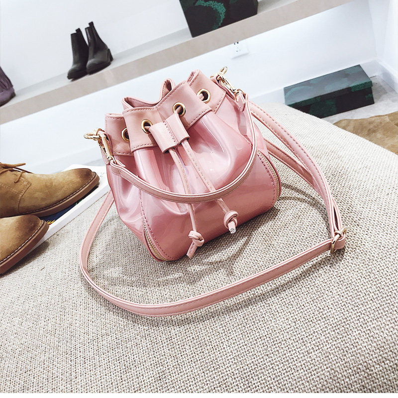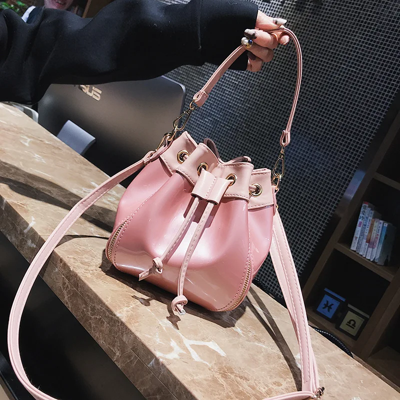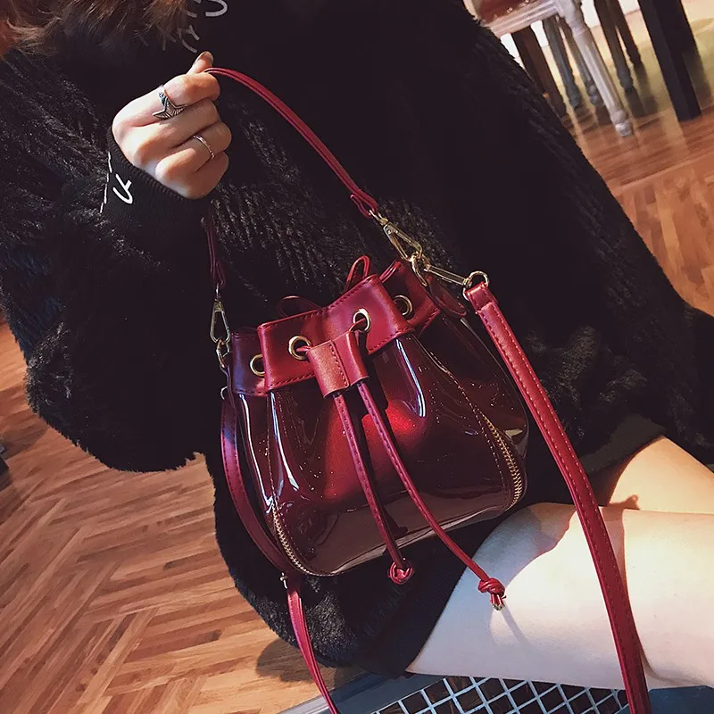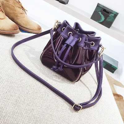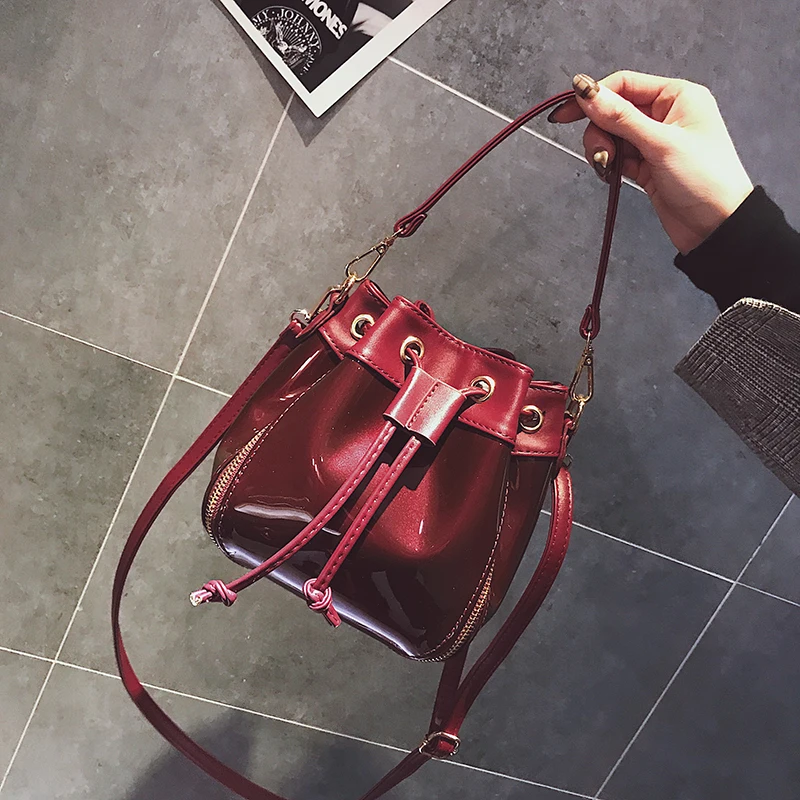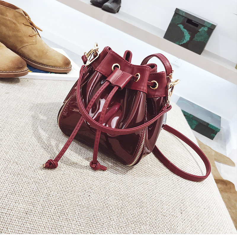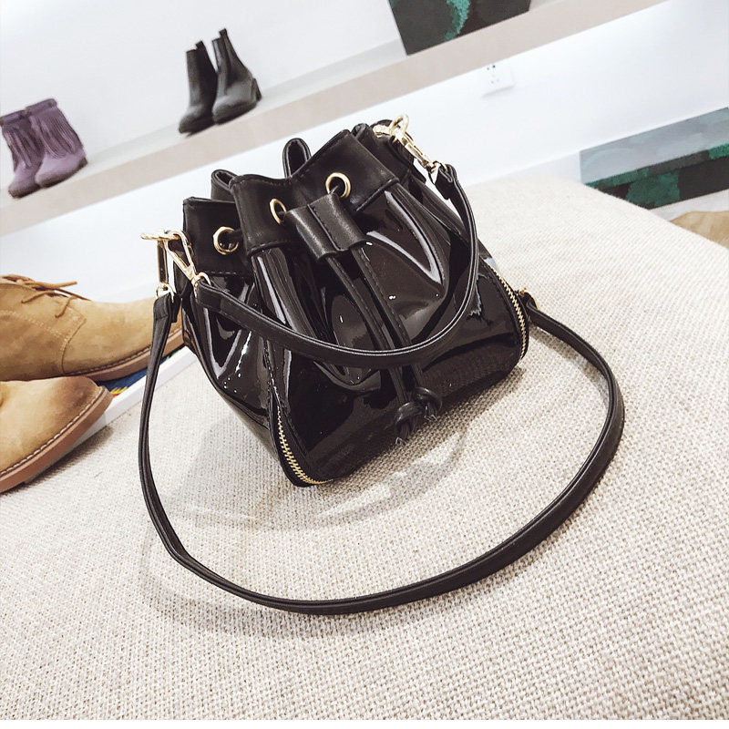 Features 2:Fashion Patent Leather Retro Buckle Pu Leather Female Bucket Bag