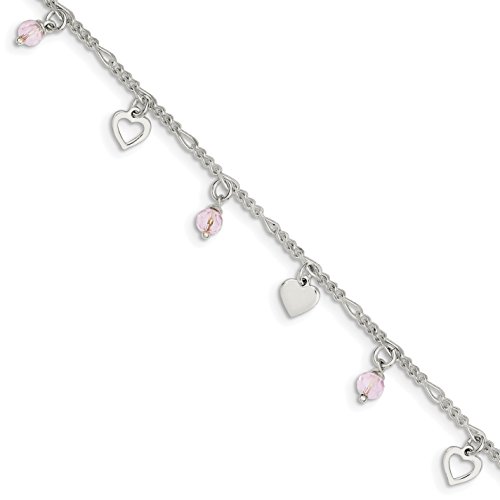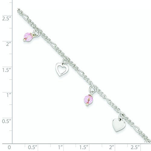 ICECARATS DESIGNER JEWELRY 925 STERLING SILVER 9 HEART ROSE GLASS 1 INCH ADJUSTABLE CHAIN PLUS SIZE EXTENDER ANKLET FOR WOMEN ANKLE BEACH CHAIN BRACELET
