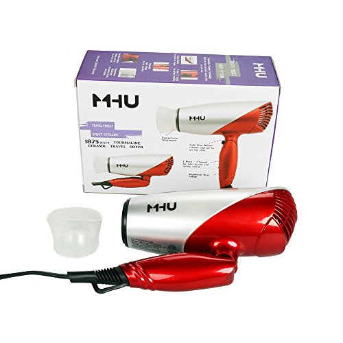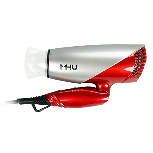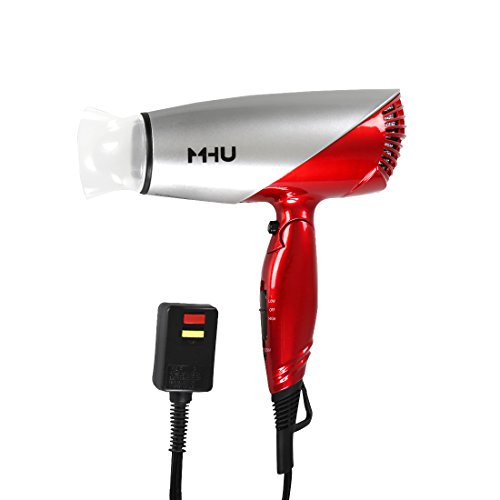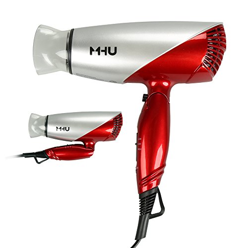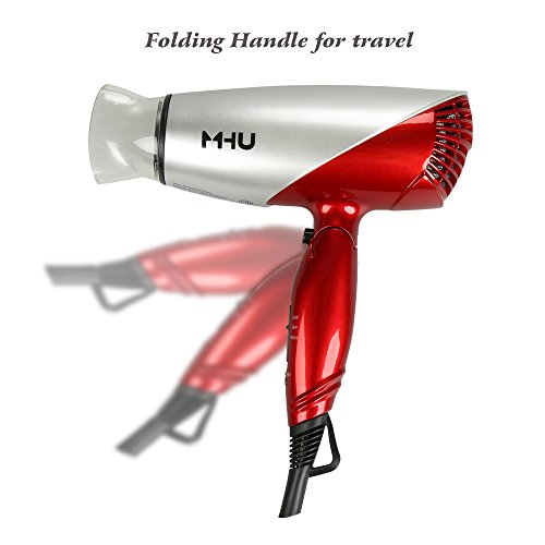 MHU 1875W Folding Hair Dryer Dual Voltage Blow dryer Negative Ions Travel Dryer with 2 Heat 2 Speed Setting, Red