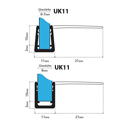STEIGNER Frameless Shower Door Bottom Seal UK11 For 0.195 Inch To 0.312 Inch (5mm To 8mm) Glass Thickness 1/4" LENGTH 23.62 Inches (60cm)