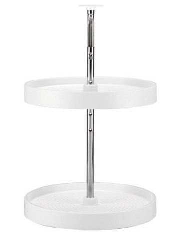 -. Feature : Trays rotate independently and are height adjustable on post collars / Includes:(2)shelves, (1)26" to 31" telescoping post,(1)pr top & bottom pivots & screws / Bright zinc plated steel post assembly / For base and upper corner cabinets with a 45° angled corner / 32in Full Round Susan Almond
