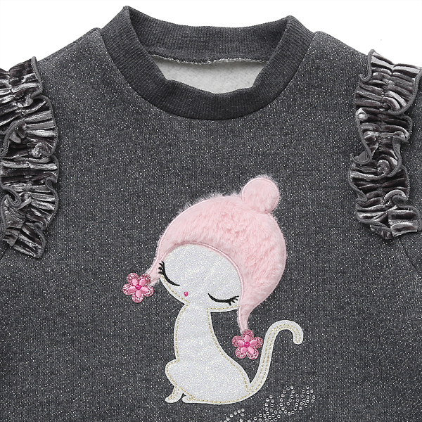| 상품설명 | 시크한 딥 그레이 컬러의 레이어드 원피스 입니다. 은은한 실버 펄이 섞여 고급스러운 느낌을 살려주었습니다. 편안한 기모 다이마루 원단으로 만들어져 입는 것이 편하며 포근하며 착용감이 좋습니다. 포인트로는 귀여운 고양이가 들어가 있습니다. 밑단에는 고급스러운 컬러매칭의 벨벳 주름 스커트가 들어가 러블리한 느낌을 더해준, 코트나 무스탕과 입어주기 좋은 원피스 아이템 입니다. |
