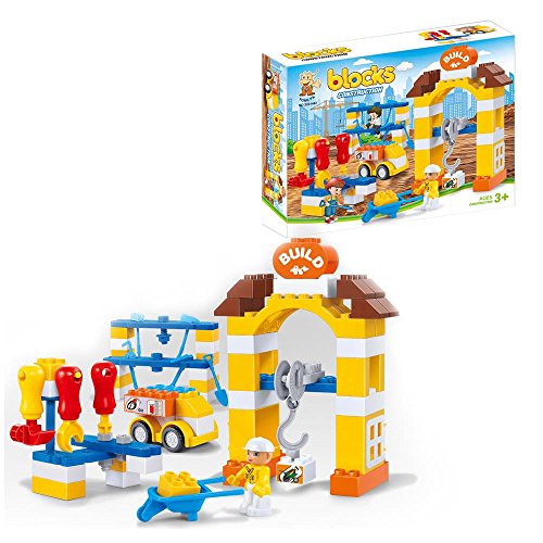 -. Feature : EDUCATIONAL TOY - These building blocks toy set teaches children problem-solving skills, inspires creativity and brain development. / To develop children's ability to recognize spatial structure and cognition. / Nice design, Eco-friendly material and fine workmanship. It makes a brilliant gift idea. / The 77pcs Toy building block Set includes 1 person,1 cart,16 tools,59 building blocks,with some stickers / As children play with these block sets, they are not only developing their hand eye coordination but also expanding imagination and logical thinking.