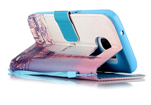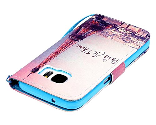 S7 Edge Case,Galaxy S7 Edge Case, Welity Eiffel Tower Pattern Premium PU Leather Wrist Strap Wallet Flip Protective Skin Case with Magnetic Closure for Samsung Galaxy S7 Edge