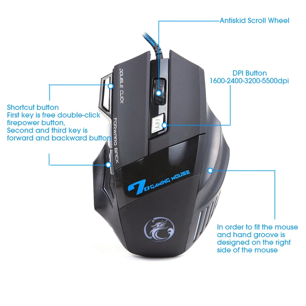 Ajustable DPI Switch: 1600-2400-3200-5500DPI