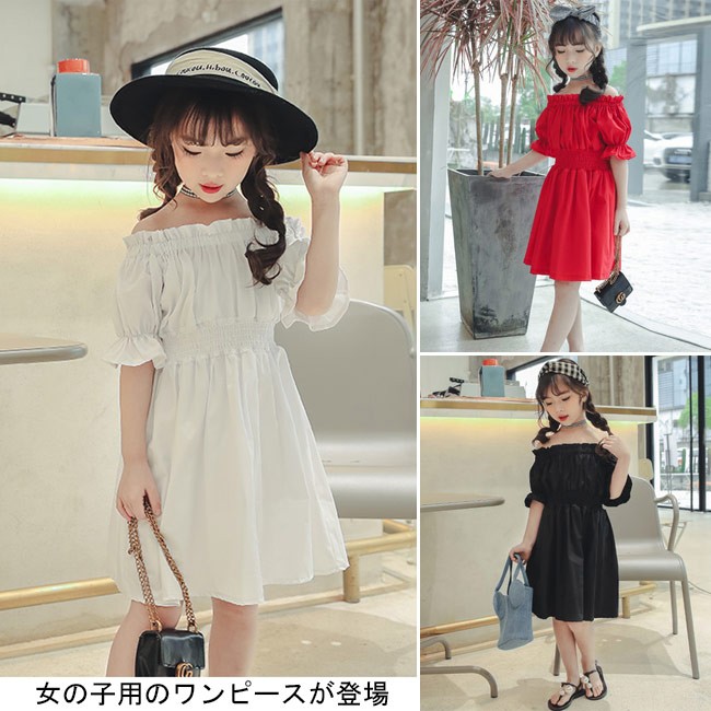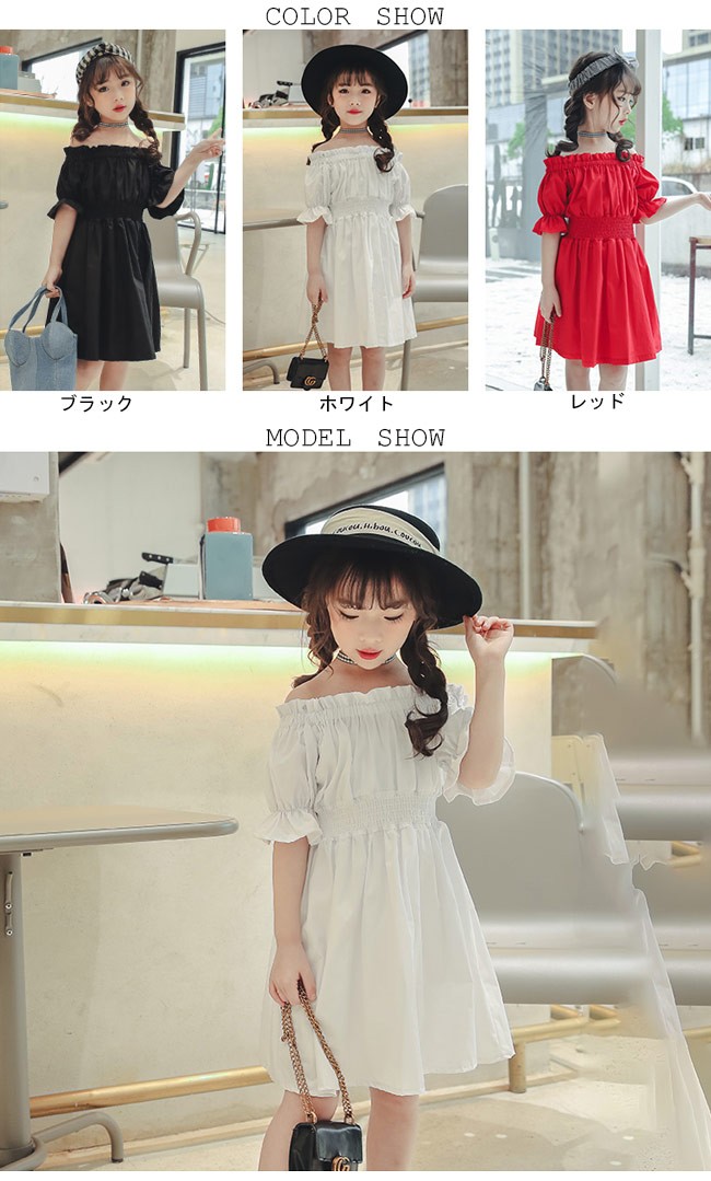 女児 ワンピース オフショルダー ミディアム丈 子供服 半袖ワンピース ウエストゴム 膝丈ワンピース ジュニア 夏物 薄手 女の子 ドレス女の子用のワンピースが登場吸湿性・通気性に優れた綿混紡素材を厳選、夏に最適な着心地をもたらす優雅なオフショルダーデザインにクラシックな色チョイスで気質アップ効果抜群腰部分はゴム仕様でより幅広い体型を対応できる袖はバルーンスリーブ仕様となっていて、甘くてレトロな雰囲気が溢れ出す上質な素材に立体的なカッティングでナチュラルなシワを作り出し、とても上品なアクセントを付けるカラー:ブラック ホワイト レッド素材 綿混紡サイズ(cm) 110 120 130 140 150 160110 総丈60 バスト60120 総丈64 バスト64130 総丈68 バスト68140 総丈72 バスト72150 総丈76 バスト76160 総丈80 バスト80ご注意:※サイズは平置きサイズです。素人採寸ですので、若干の誤差がございます、ご了承ください。