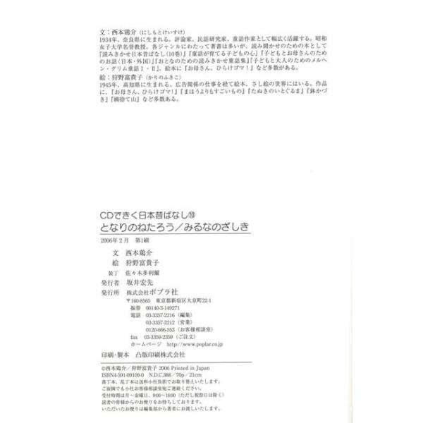 【商品基本情報】 商品名称:CDできく日本昔ばなし10 となりのねたろう/みるなのざしき 著者/出版社:西本 鶏介/西本 鶏介 初版発行日:2006/02/01 サイズ:A5判 ページ数:70 ISBN/JAN:4591091090/4528189434240