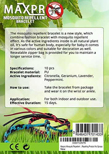 -. Brand : MAXPRO -. EAN : 0646437701433 -. Feature : MAXPRO - Mosquito Repellent Leather Bracelets Family 10 Pack. Best of All 100% Pure Natural Plant Oils Repelling Product. No Nasty Sprays & Deet Free. Maxpro leather bracelets lasts for 15 days. The bracelets come in a resealable zippier bag so you can store the bracelets in the resealable bag when you are not using them. Do this for maximum efficiency. These bracelets are of the Highest quality on the market today. Dont waste your time with anything less. / MAXPRO - Mosquito Repellent Leather Bracelets Family 10 Pack. Gives you practical & stylish solution to repell Mosquitos. Maxpro bracelets are made from pure natural plant oils. Citronella Geranium Lavender & Peppermint. / MAXPRO - Mosquito Repellent Leather Bracelets. First thing to do when you receive the package is ware one around your wrist or ankle as a bracelet and still look stylish & you are secure & safe within a bubble of protection. To prolong the life of the bracelet please store it in the resealable bag when not in use. / MAXPRO - If you are one of those people like me that Mosquitos just love. You can always double up by wearing one bracelet on your left wrist & one on your right ankle. These bracelets are perfect for Mums Dads Children all ages you should always save guard your family with the Maxpro mosquito repellent bracelet. / MAXPRO - Mosquito Repellent Leather Bracelets Family 10 Pack is the best quality that money can buy. Our Quality Control is an area we put a great deal of time and effort into. We will always aim to please , so if you do have any problems with this product please contact us first through your Amazon account. So Please enjoy this product and PLEASE click on the ADD TO CART button now to place your order. Thank you -. Label : KC-TECH -. Manufacturer : KC-TECH -. PackageQuantity : 10 -. ProductGroup : Lawn & Patio -. ProductTypeName : OUTDOOR_LIVING -. Publisher : KC-TECH -. Studio : KC-TECH -. Title : Maxpro Mosquito Repellent Bracelet Leather Family 10 Pack Best of All 100% Pure Natural Plant Oils Repelling Product No Nasty Sprays & Deet Free -. UPC : 646437701433