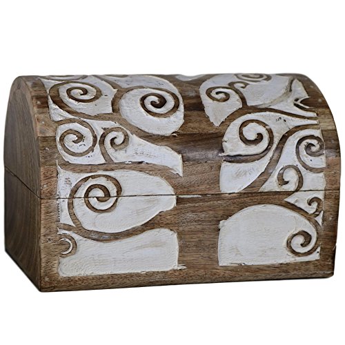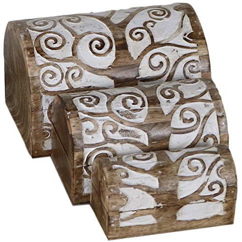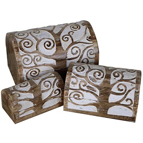 Handcrafted Tree of Life Wooden Chest (Set of 3) Carving Carved Wood Rustic Domed Jewellery Box CH-01
