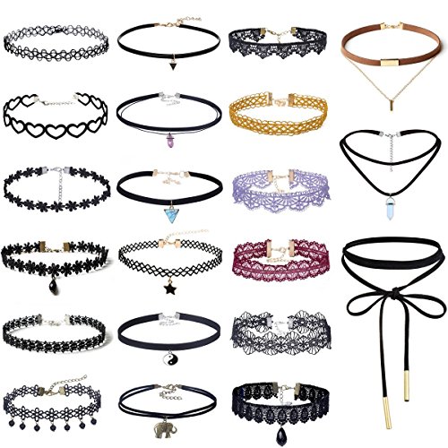 Tpocean 21Pcs Rainbow Lace Tattoo Choker Set Gothic Punk Velvet Necklaces Girls Teens Party Gifts