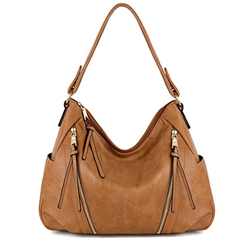 HIGH QUALITY - Soft synthetic leather. Classy gold-tone top zipper closure. Detailed streamlined stiching. Full-lined coffee fabric lining.