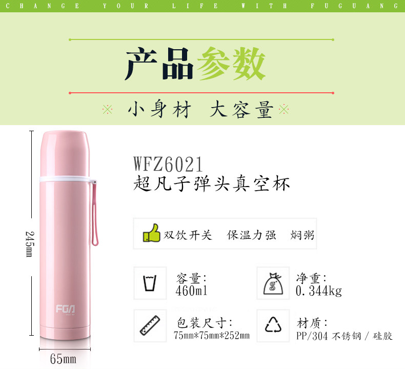 富光保温杯 男女士学生不锈钢子弹头创意瓶杯子便携水杯