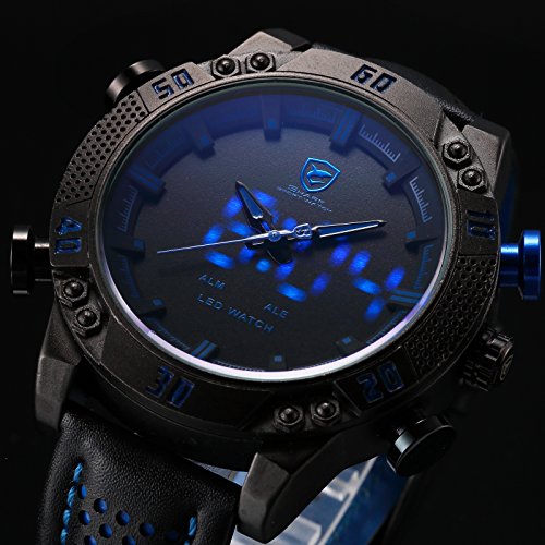 - Dual Movement, analog with LED displaying day and date