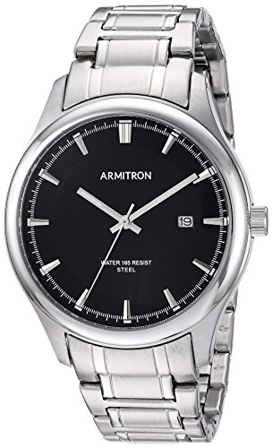 Mineral crystal lens; black sunray dial with silver-tone hands and markers; date calendar window; white printed outer minute track