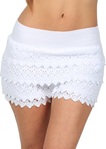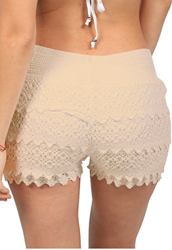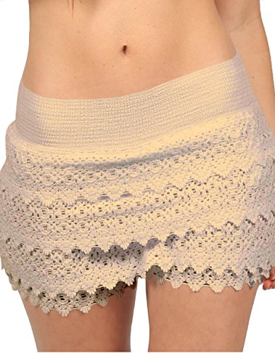 -. Title : Cotton Natural Women's Crochet Lace Shorts Beach Scallop Hem Miniskirts