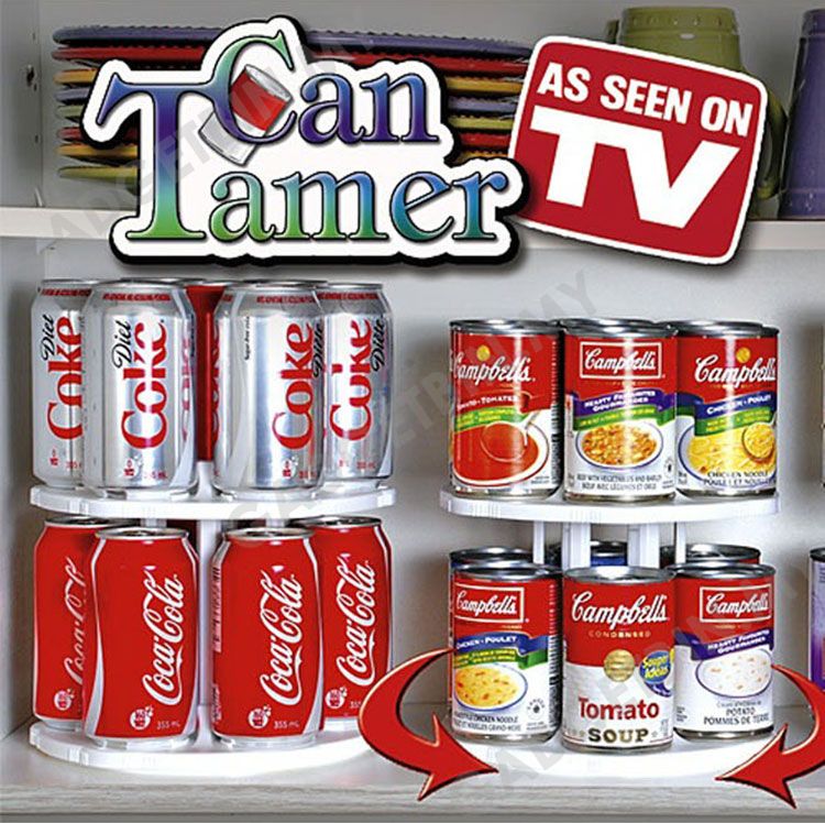 Do you have so many cans in your cabinet that you just cannot see everything in there? How many items go to waste or pile up because you don’t see them and buy them again? Here comes the solution- The new Can Tamer Carousel, as seen on TV. The Can Tamer Carousel is two tiers. You can fit the Can Tamer Carousel in a cabinet, pantry, or fridge. If you don’t want to keep the Can Tamer Carousel in a cabinet, feel free to leave it out on the counter. The Can Tamer Carousel spins all the way around so you don’t need to go digging looking to see what cans you have to use.