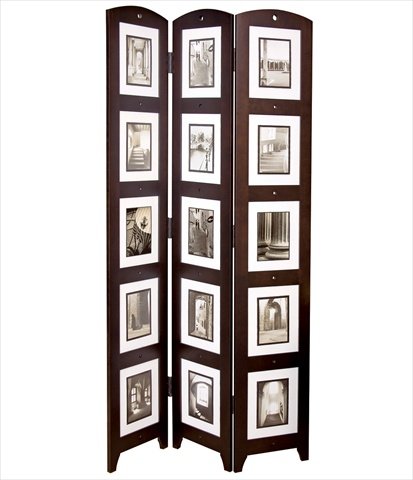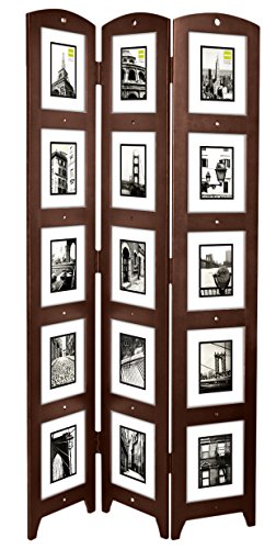 Nexxt stylish floor standing triple screen panel holds fifteen 5x7(8x10) photos in Espresso finish. Solid wood construction and overall size is 33-inch by 64-1/2-inch by 0-1/2-inch. It's perfect as room divider.Feature