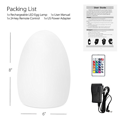 Mr.Go 8-inch LED Egg Light Nightlight Mood Lighting Lamp for Adults and Children - Remote Control - 16 RGB Colors - Bright and Dim Settings - Smooth and Flash Light Effects - Rechargeable - Fun Safe