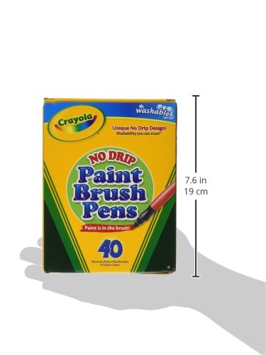 -. Binding : Toy -. Brand : Crayola -. Color : ASSORTED -. Department : Pens & Desk Supplies -. EAN : 0045555859475 -. Feature : Trusted brand delivers convenience and ease of use / Kids love to paint, can be used on almost any surface Great for arts and crafts and school projects / Washability makes fun with colors and clean-up simpler than ever / Painting develops child's fine motor skills and teaches color mixing and blending / Painting is enjoyed by children of all ages -. IsAdultProduct : 0 -. IsAutographed : 0 -. IsMemorabilia : 0 -. ItemPartNumber : 54-6203 -. Label : Binney & Smith -. Manufacturer : Binney & Smith -. Model : 54-6203 -. MPN : 54-6203 -. NumberOfItems : 1 -. PackageQuantity : 1 -. PartNumber : 54-6203 -. ProductGroup : Toy -. ProductTypeName : TOYS_AND_GAMES -. Publisher : Binney & Smith -. Studio : Binney & Smith -. Title : Crayola 40-Count Washable No Drip Paint Brush Pens -. UPC : 640206333887 -. Warranty : No Warranty