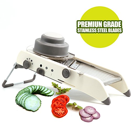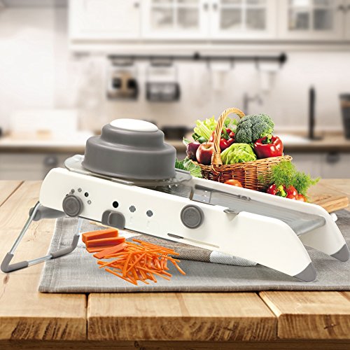 Madoline Slicer, Multipurpose Vegetable Blade Slicer Fruit Slicer Adjustable Blade Slicer with Safety Protection Handle Hats, BPA Free Plastic, Stainless Steel Blade White/Gray