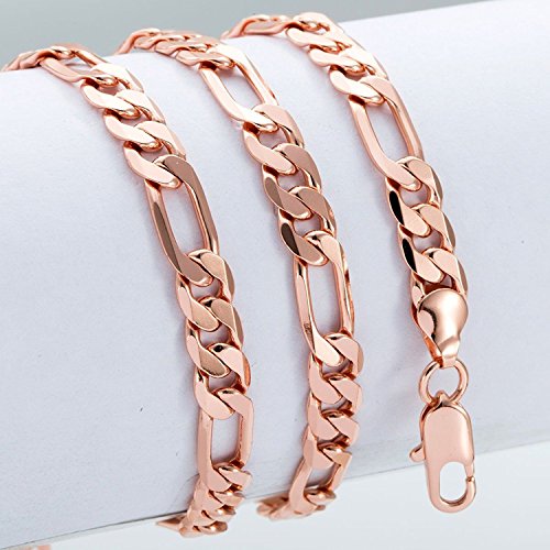-. Feature : Material:Gold Plated / Flat Figaro Rose Gold Plated Necklace.Come With a Trendsmax Bag / Measurement:Width:6mm Length:18-36inch Weight:18-36g. / Mens Chain Boys Necklace Jewelry / Gift, Present for Thanksgiving Christmas