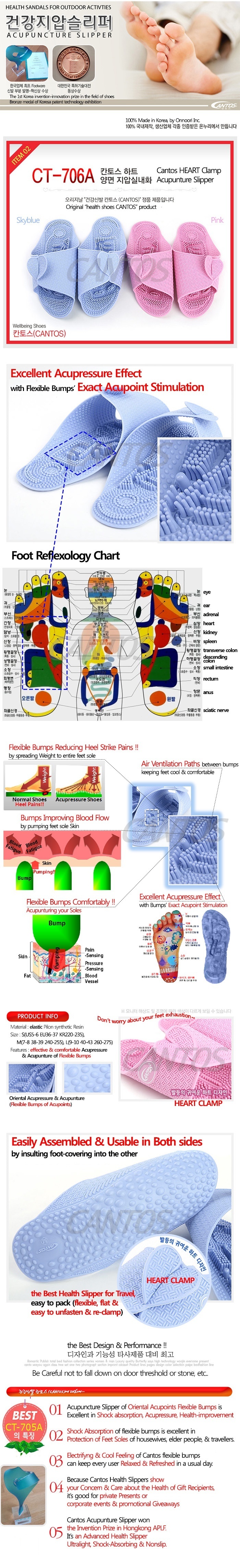 The product adopted the merits of gravels and sands, giving excellent acupuncture effect. Besides, its air cushion protects the vertebra system, improves warming efficiency, and minimizes cooling rate. CANTOS Health sandals apply the merits of gravels and sands. CANTOS Health sandal's Features are as follows.