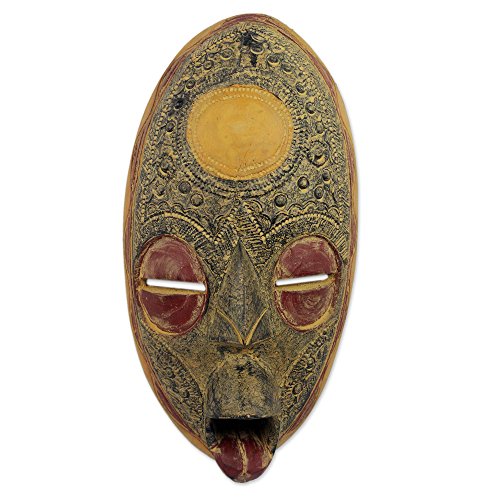 NOVICA Decorative Large Sese Wood and Aluminum Mask, Yellow 'Only Good Thoughts'
